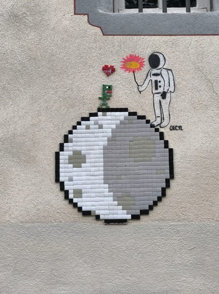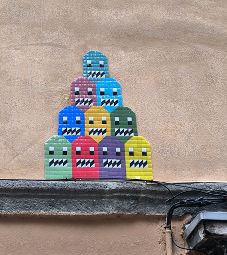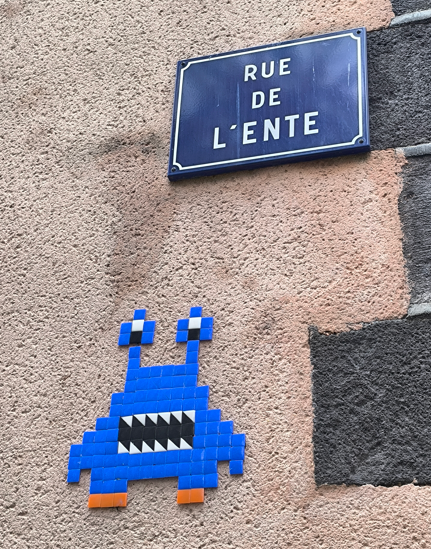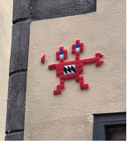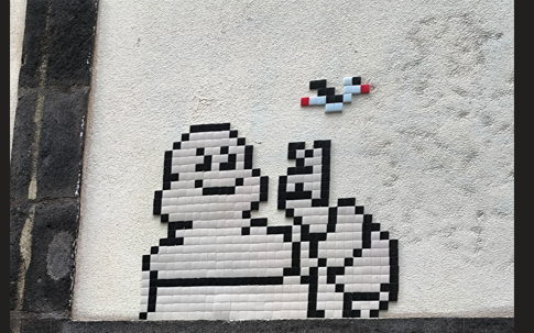 Depuis 2016 des “Spaces Invaders” envahissent Clermont-Fd. Franck Slama, artiste de rue et notamment de mosaïques, a décoré en effet la ville d’une trentaine d’œuvres.