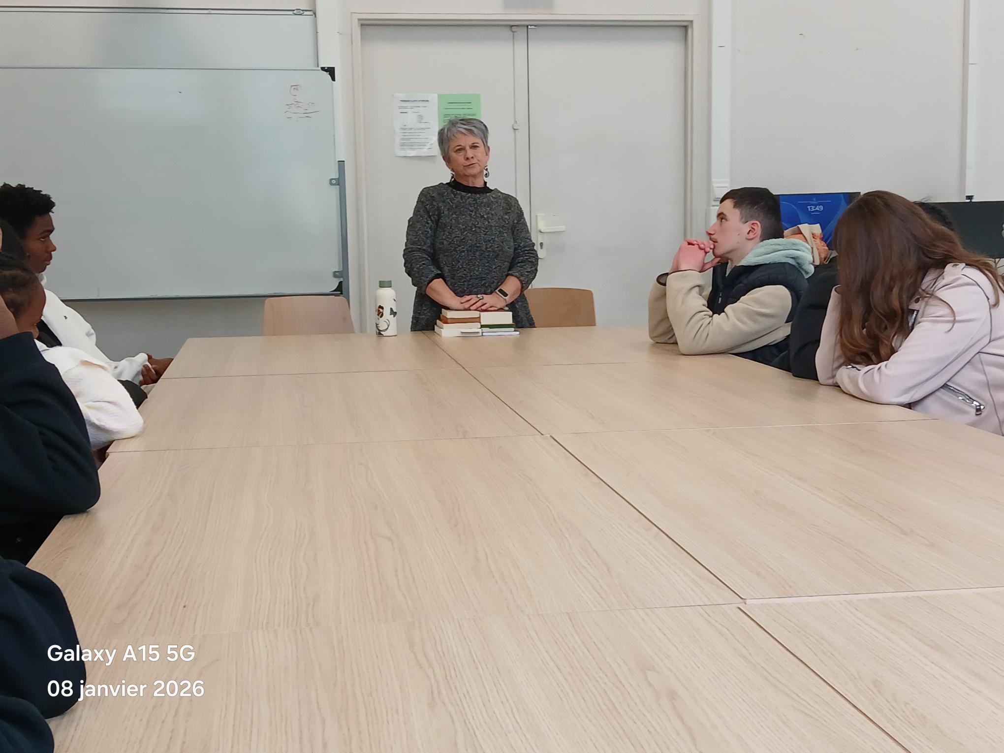 C'est tout un univers qu'est venue présenter Mme Barbecot jeudi 07 janvier aux élèves des deux classes de CAP Équipier polyvalent du commerce 1ère année : son parcours professionnel d'abord, sa passion pour l'objet livre et la lecture, les différents formats du livre, son quotidien professionnel entre lecture, manutention et conseil clientèle, la particularité de la Scop librairie Les Volcans, le circuit du livre et sa spécificité en tant que marchandise culturelle, la relation client en librairie.